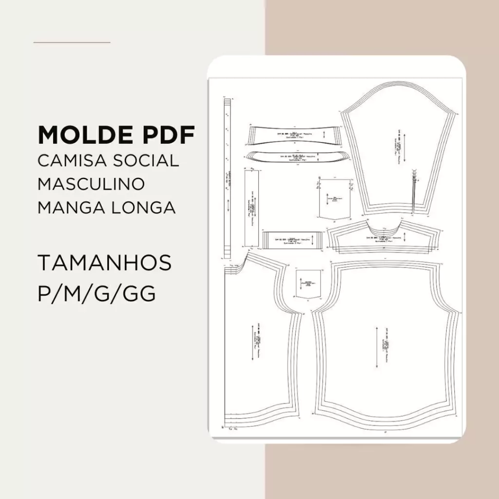 -Arquivo PDF modelagem Camisa social Masculino Tamanhos P,M,G,GG em A4 separado tamanho por tamanho.