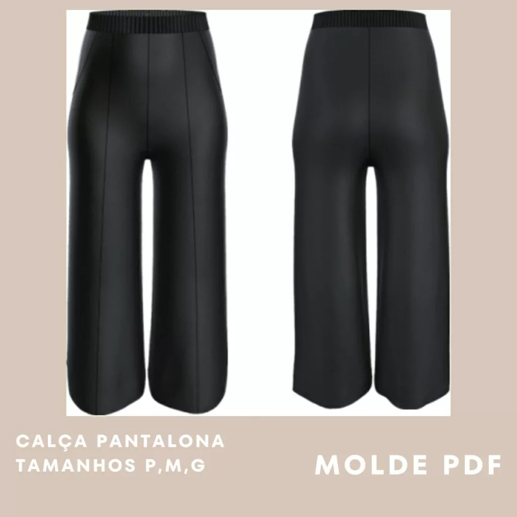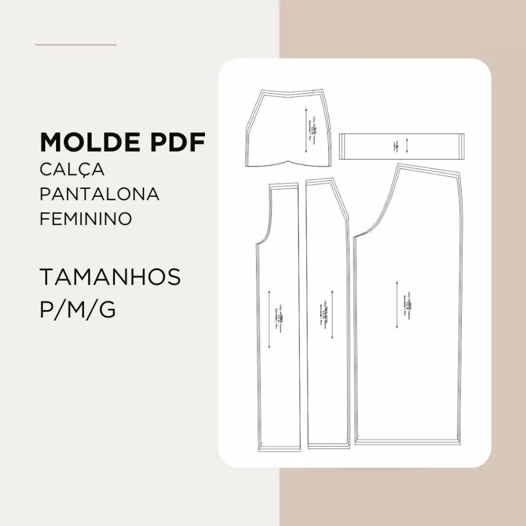 -Arquivo PDF modelagem Calça Pantalona Feminino Tamanhos P,M,G em A4 um dentro do outro.